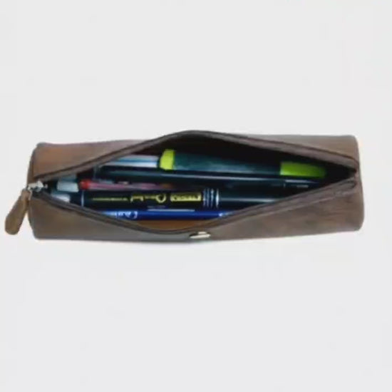 - Premium leather pen case with a classic vintage look