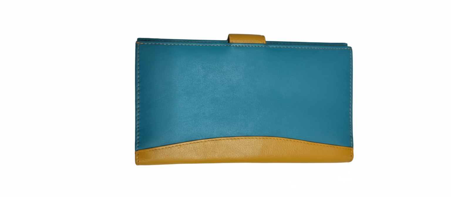The WRIZA Women’s Premium Bi-Fold Purse is crafted for women who want elegance, practicality, and modern design in one compact accessory. This purse features a beautiful teal exterior paired with mustard detailing, giving it a bold and fashionable edge.