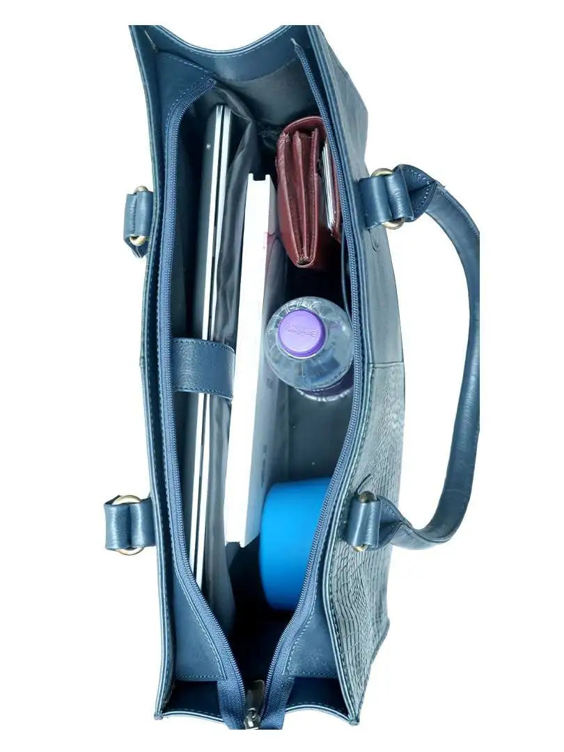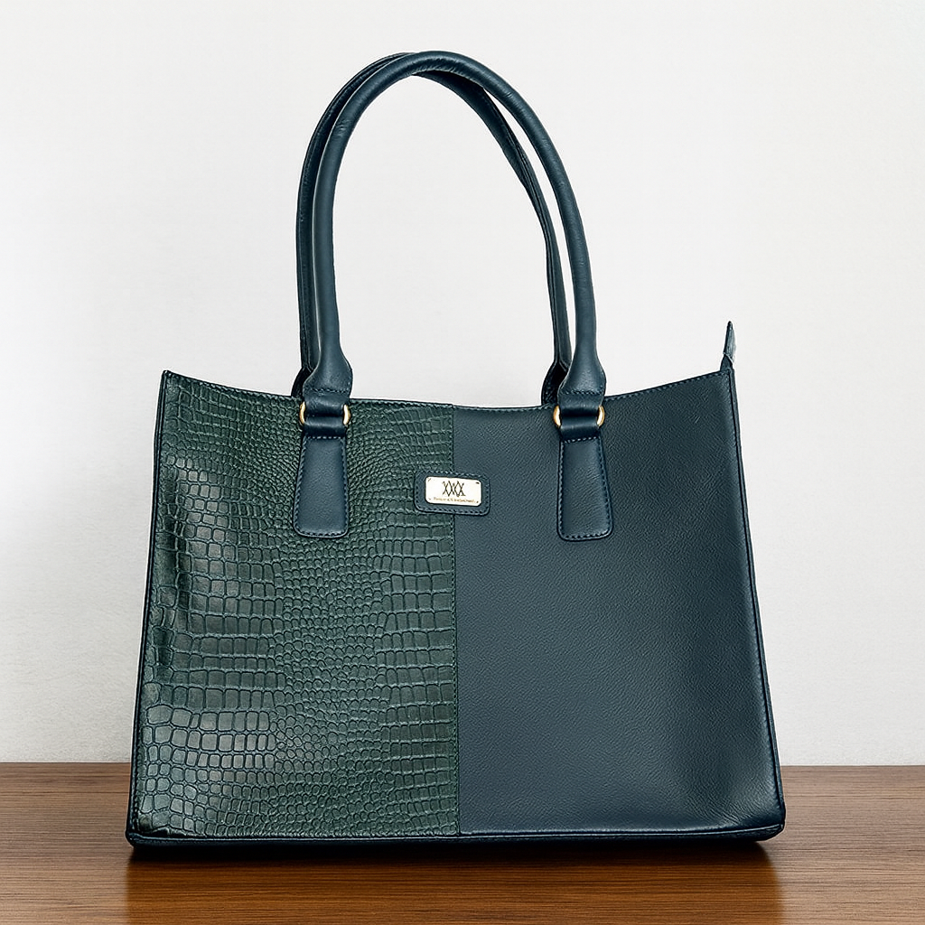 The WRIZA Women’s Dual-Tone Handbag (Blue) offers a refined mix of sophistication and utility. Crafted from premium faux leather with a contrasting croc-texture panel, this handbag elevates your daily style while providing ample space for everything you need office essentials, small laptop/tablet, cosmetics, and personal accessories.